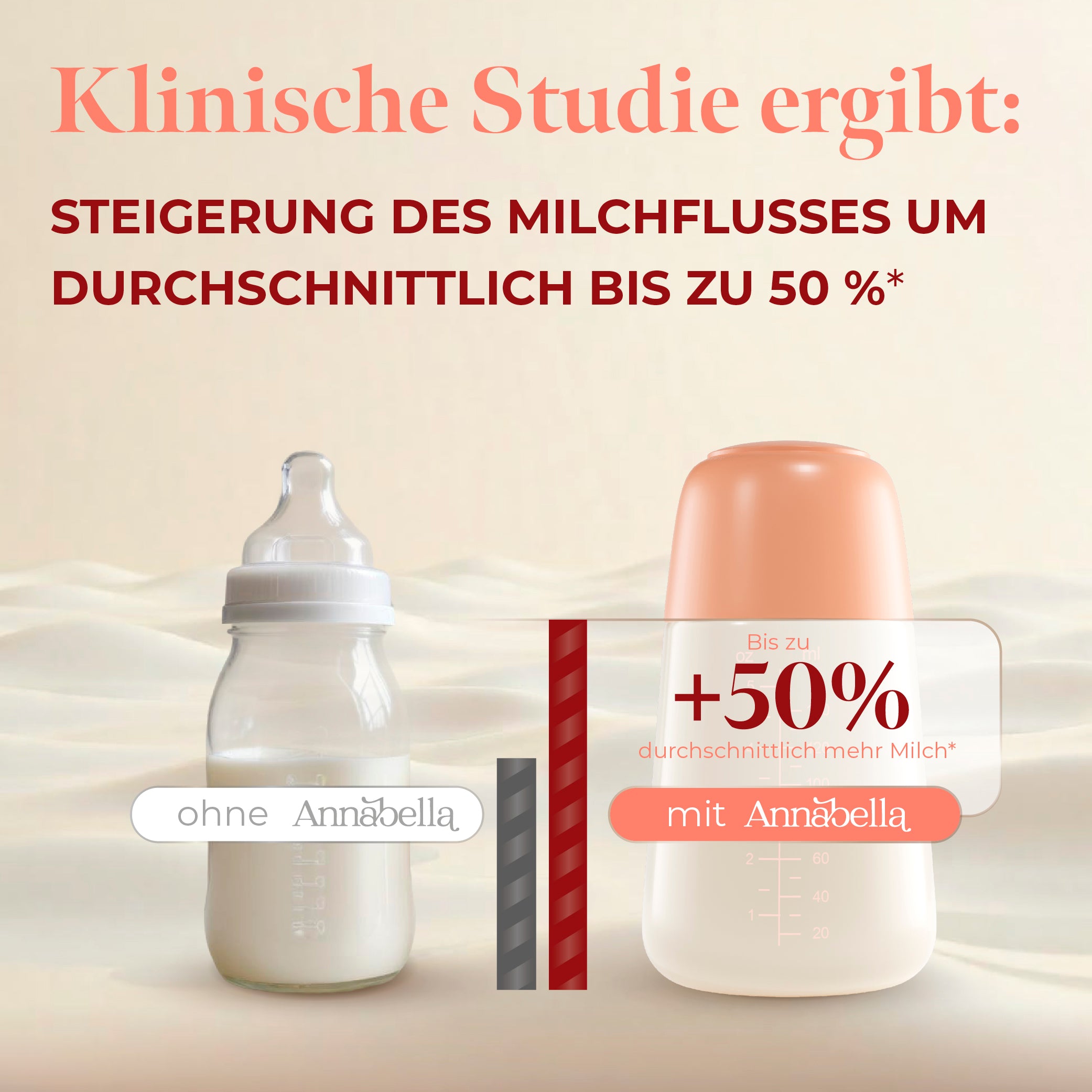 In einer kontrollierten klinischen Studie erreichten Teilnehmerinnen mit Annabella im Durchschnitt eine deutlich höhere Milchmenge als mit herkömmlichen elektrischen Milchpumpen.