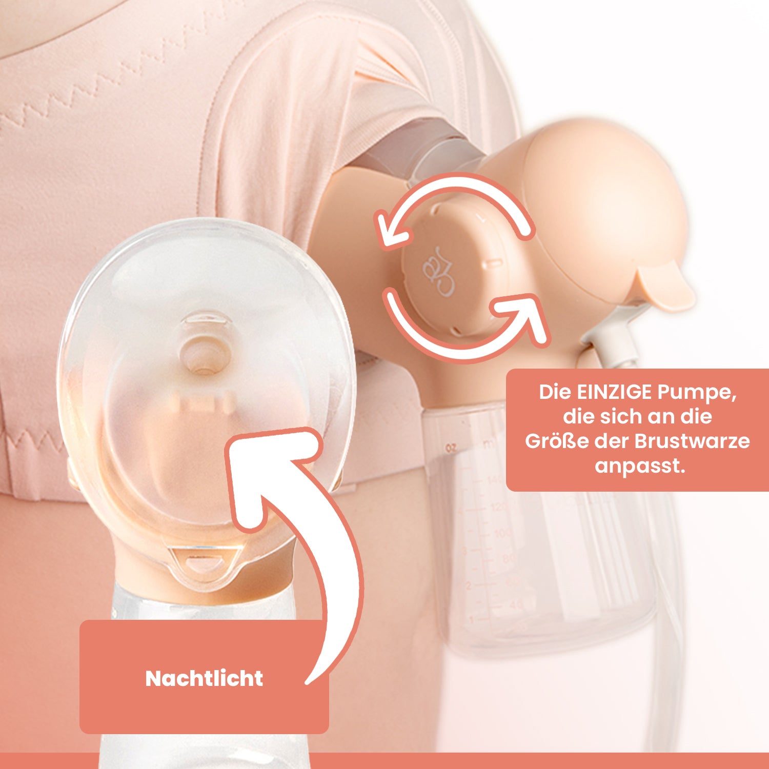 Technologie, die die Zunge des Babys simuliert und bekanntermaßen die Hormonausschüttung unterstützt, die die Milchproduktion auf angenehme Weise fördert.