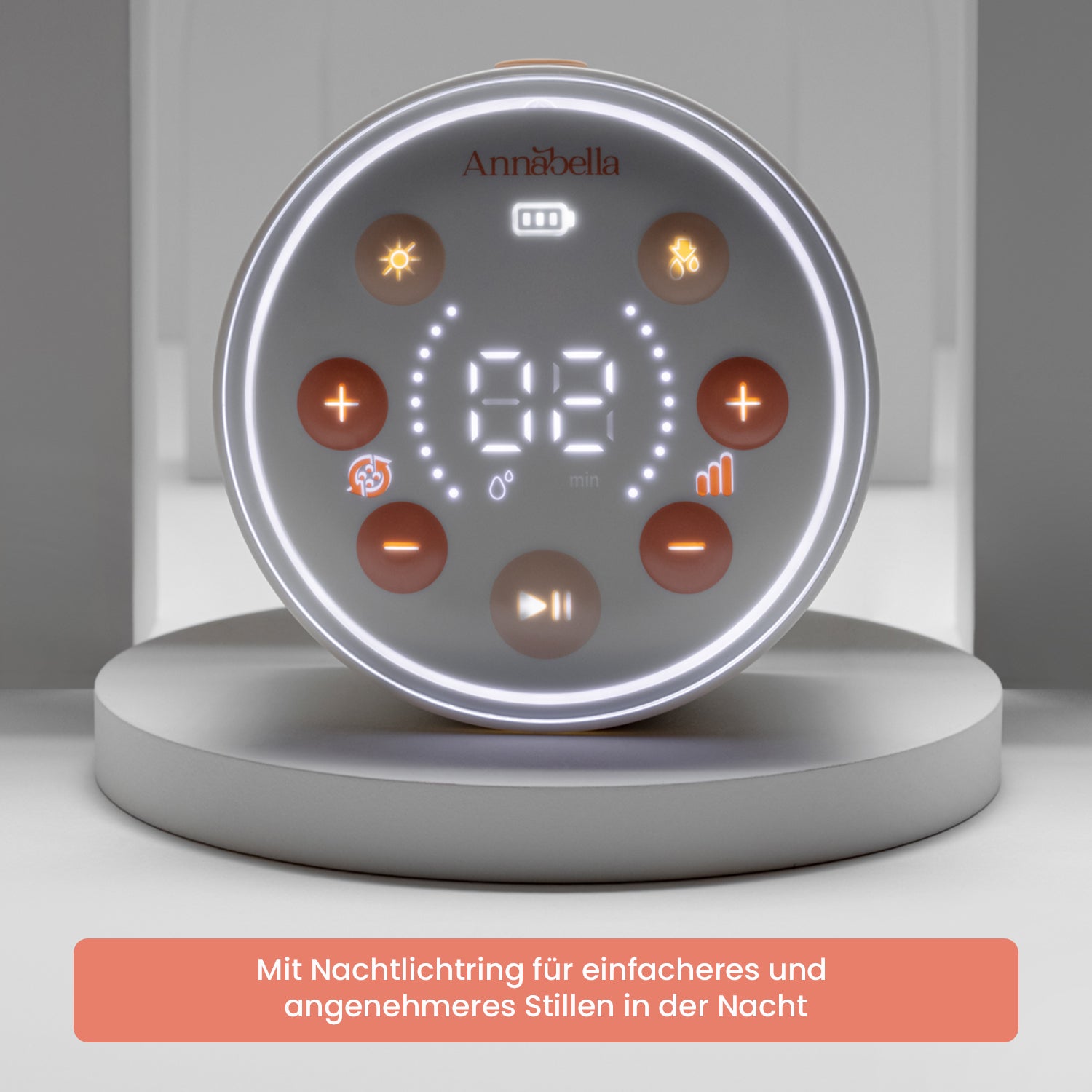 Die Annabella Milchpumpe ist die weltweit erste Brustpumpe mit fortschrittlicher Zungensimulationstechnologie, die das natürliche Saugmuster eines Babys nachahmt und so die Milchproduktion effektiv fördert. Diese einzigartige Technik stimuliert gezielt die Ausschüttung der Hormone Oxytocin und Prolactin und kann zu einer durchschnittlichen Steigerung der Milchmenge um bis zu 50 % führen.
